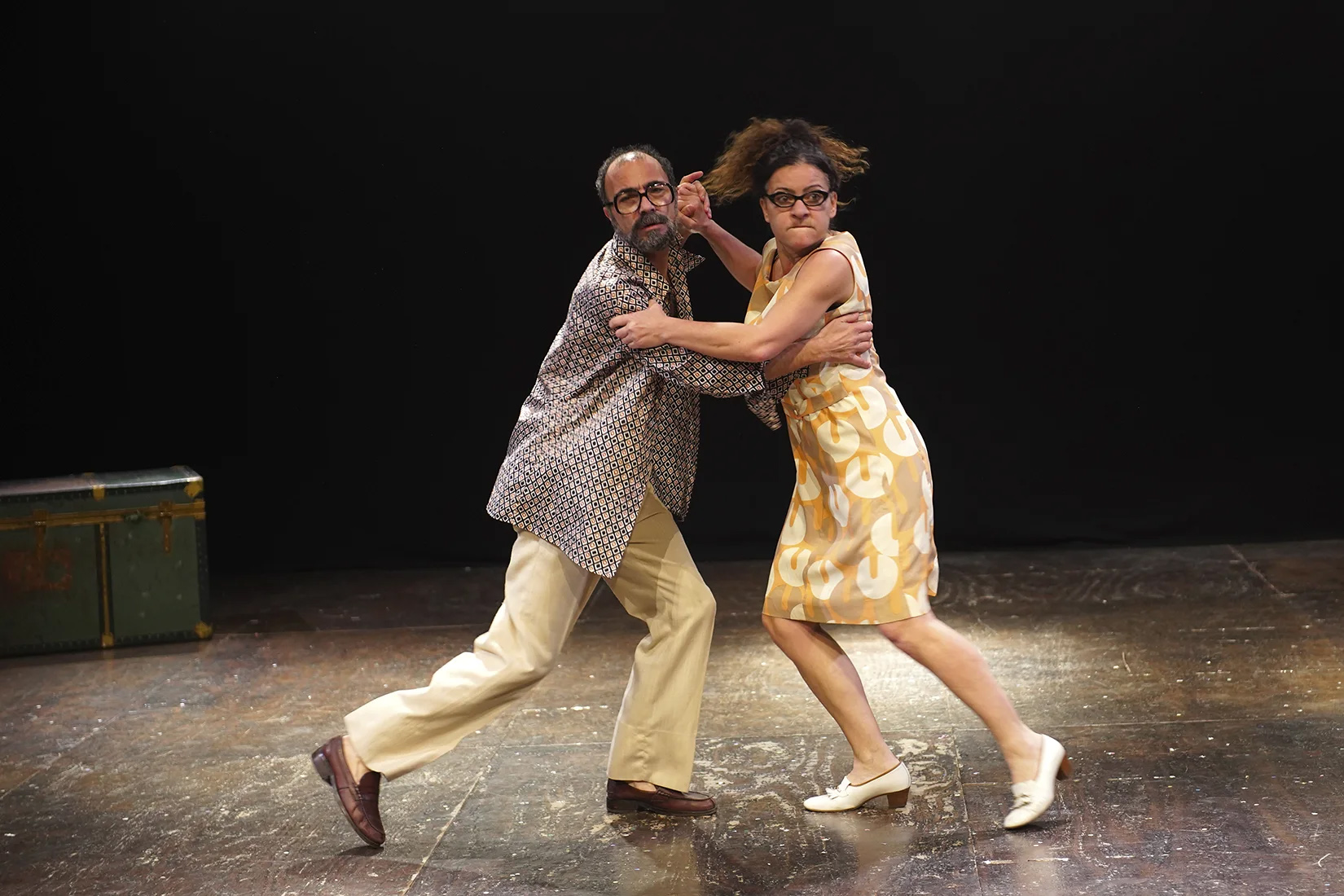 Protagonisti dell’intenso passo a due sono Sabino Civilleri e Manuela Lo Sicco - coppia sul palco e nella vita - attori storici della Compagnia Sud Costa Occidentale fondata con Emma Dante e interpreti dei suoi primi, folgoranti lavori, da Carnezzeria a MPalermu; lei ha nel curriculum anche il premio Ubu 2021 come miglior attrice per un altro spettacolo di Dante, Misericordia.