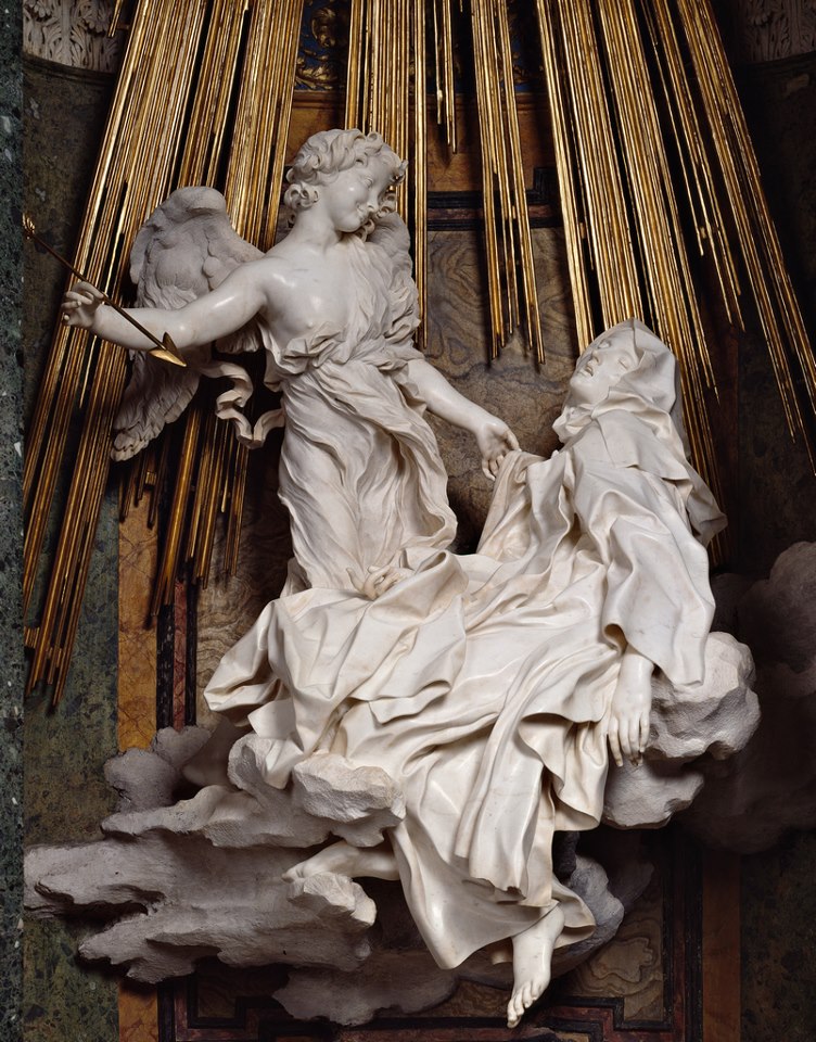 Questa, che è una delle sculture più insigni di tutti i tempi, suscitò all’epoca un certo scalpore per la perfezione con la quale il Bernini riuscì a rendere l’esperienza di massimo piacere provato dalla santa durante l’esposizione all’estasi. Infatti essa trasmette una inequivocabile carica erotica che si infonde nell’atto mistico con l’intensità di un orgasmo.