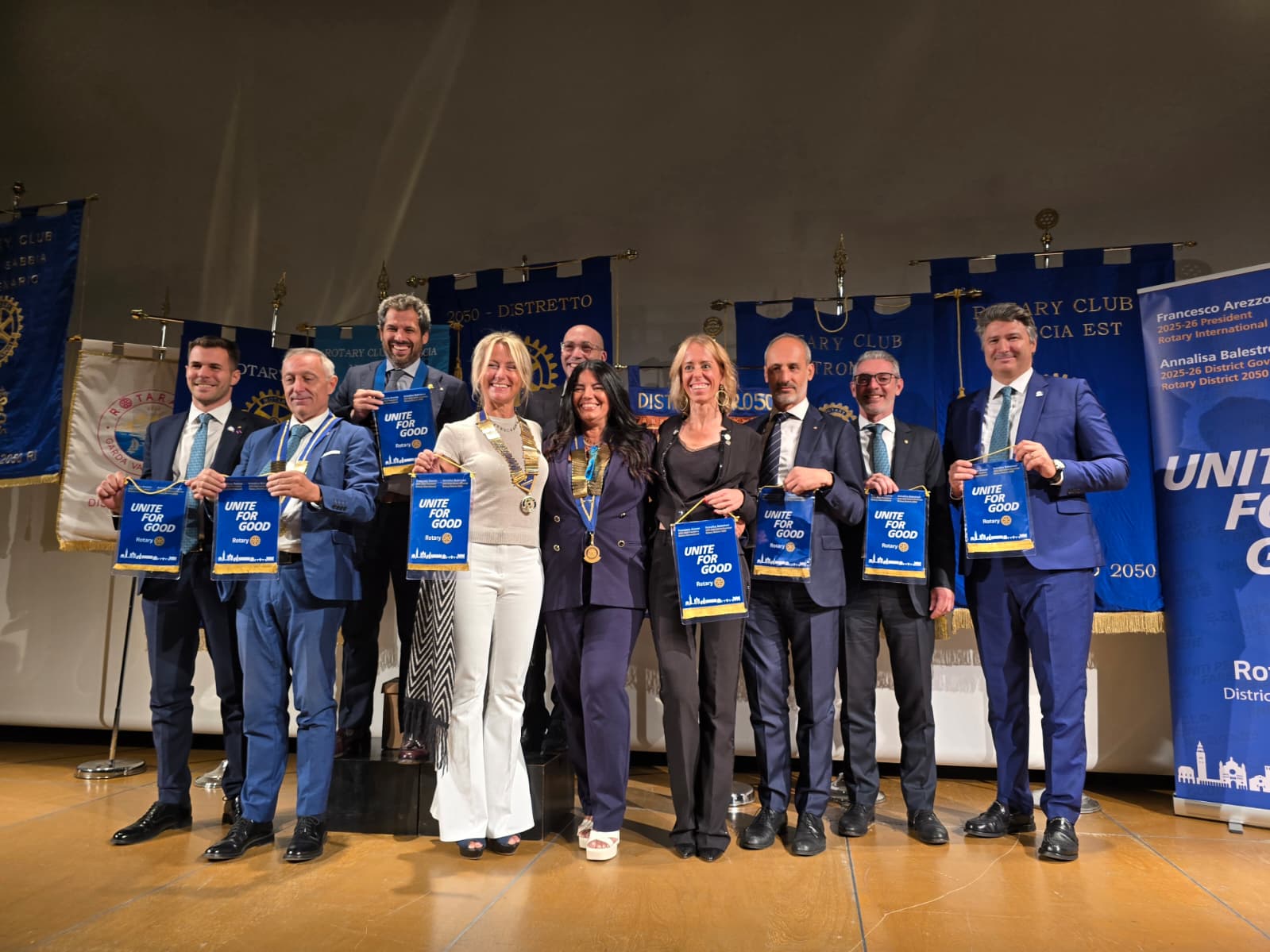 Sono intervenute oltre duecento persone, soci rotariani con i Presidenti Massimiliano Mombelli del RC Brescia Est, Giuliano Richiedei del RC Brescia Museo Mille Miglia, Susanna Bulferetti Vice Presidente del RC Brescia Next, Bruno Gorlani del RC Brescia Valtenesi, Susanne Toepler del RC Salò e Desenzano del Garda e Michele Radici del RC Valtrompia, ma anche autorità civili e militari e cittadini interessati a conoscere meglio la realtà di questo sodalizio che opera da oltre vent’anni anche sul territorio della Valle Sabbia.