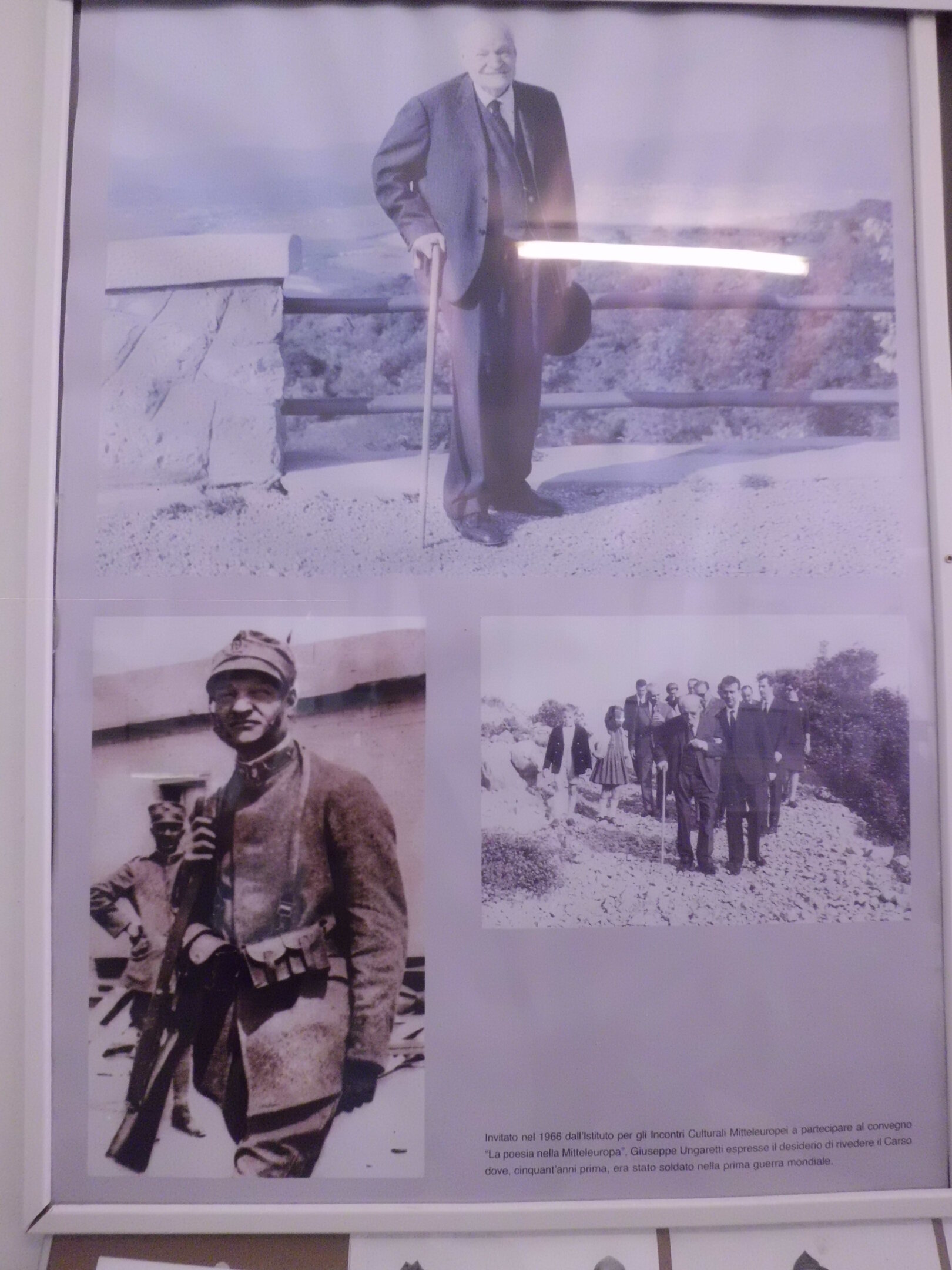Ciò che più mi ha commosso è stato vedere, nel piccolo ma pregevole museo sempre aperto ai visitatori sulla vetta del San Michele, la fotografia incorniciata di Ungaretti, oramai quasi ottantenne, che, invitato a Gorizia nel 1966, espresse il desiderio di essere portato lassù, sul San Michele, e rivedere con gli occhi da anziano il luogo del dolore vissuto durante la giovinezza.