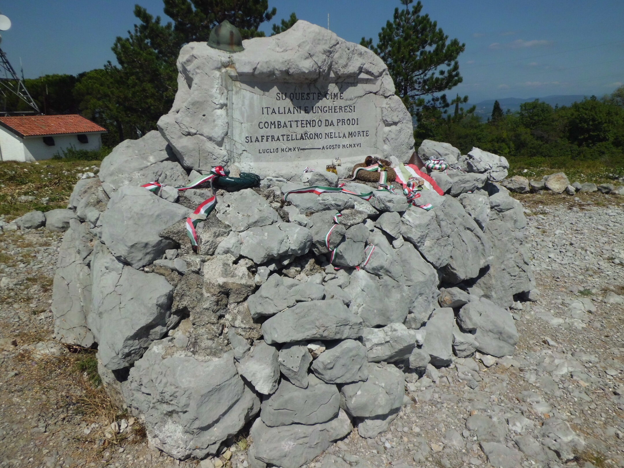 Costeggiando resti di trincee e camminamenti, son giunto davanti al monumentale Cippo Filippo Corridoni, poi alla Trincea delle Frasche e a un altro cippo dedicato alla Brigata Sassari.