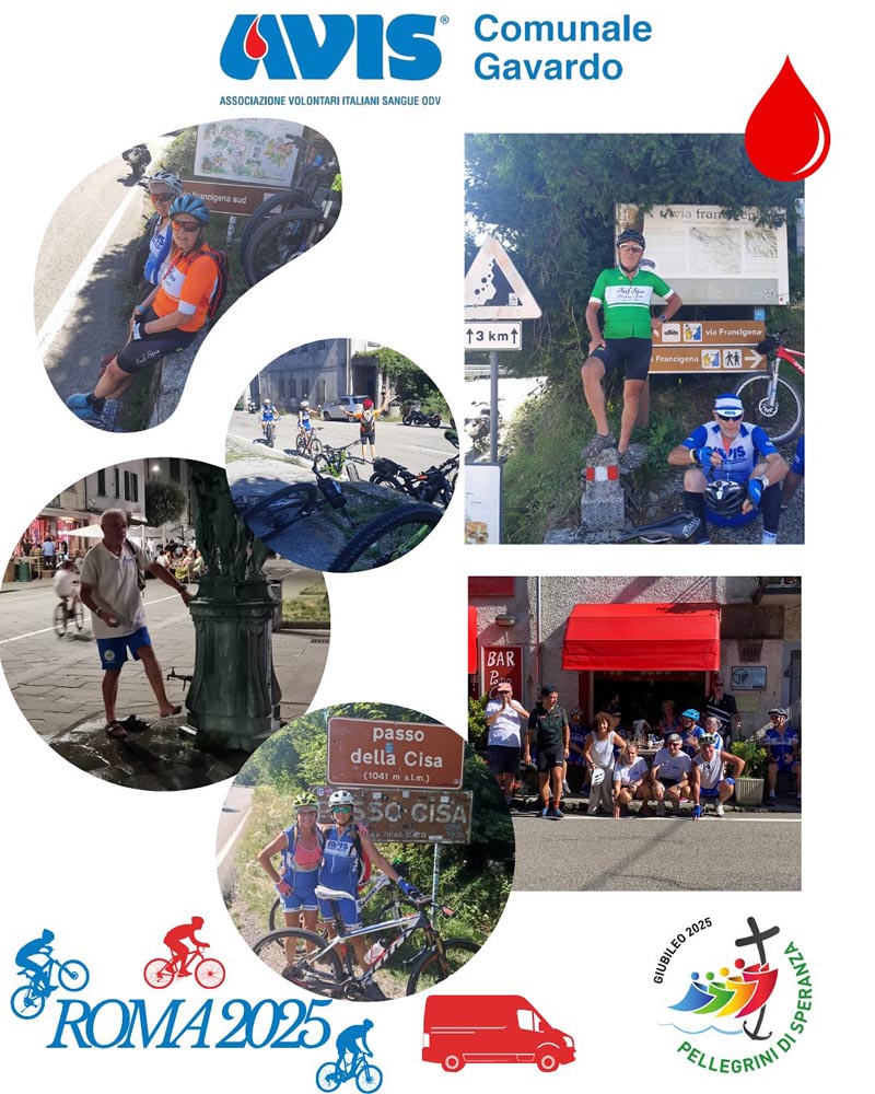 Oggi il gruppo ciclistico avisino di Gavardo ringrazia le AVIS incontrate in agosto durante le tappe del pellegrinaggio verso Roma.