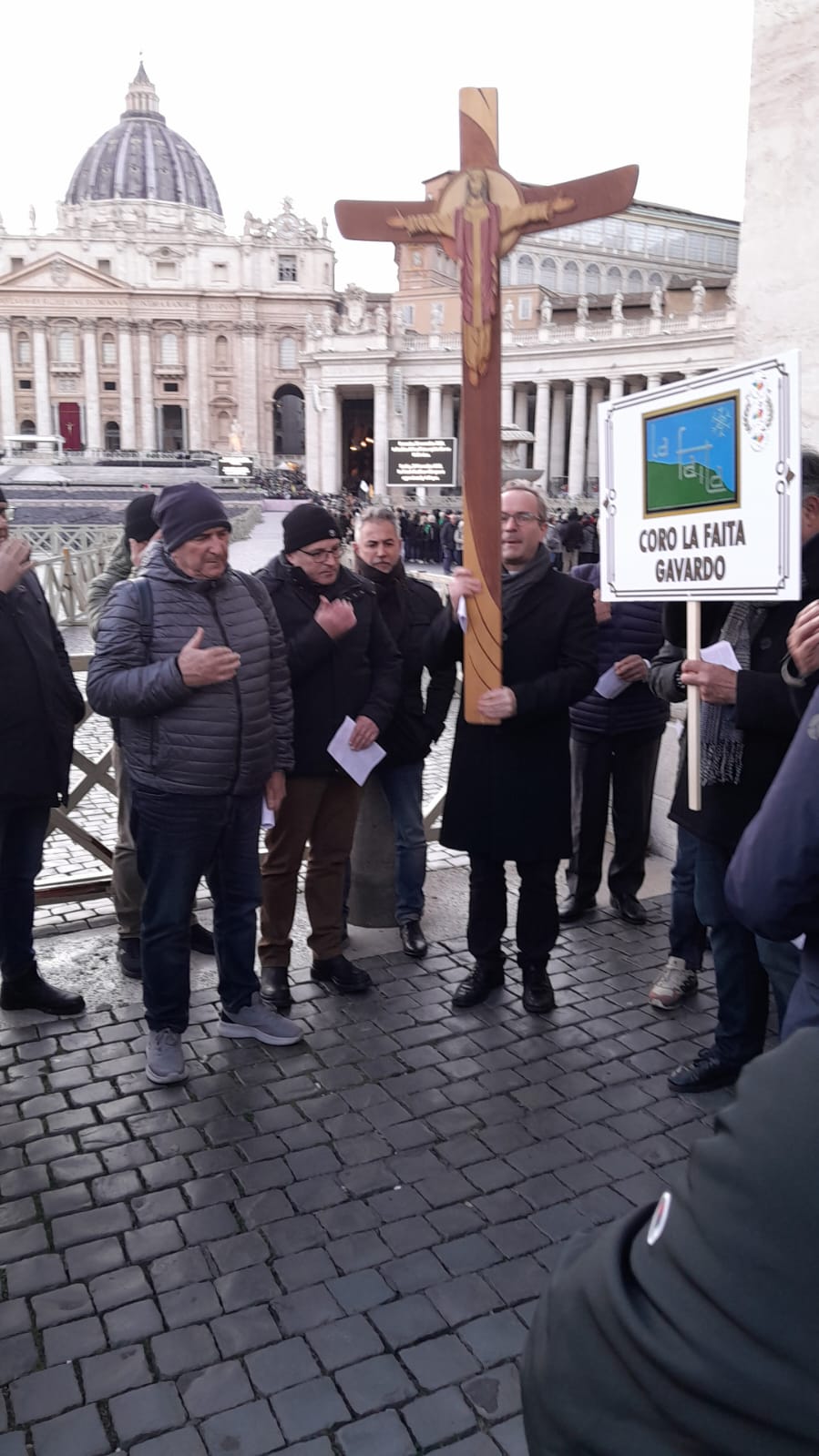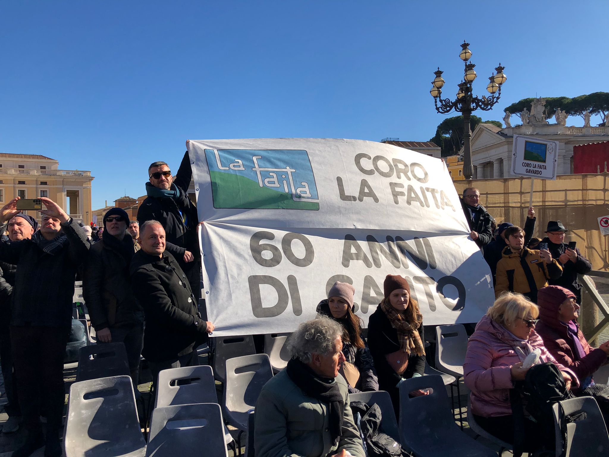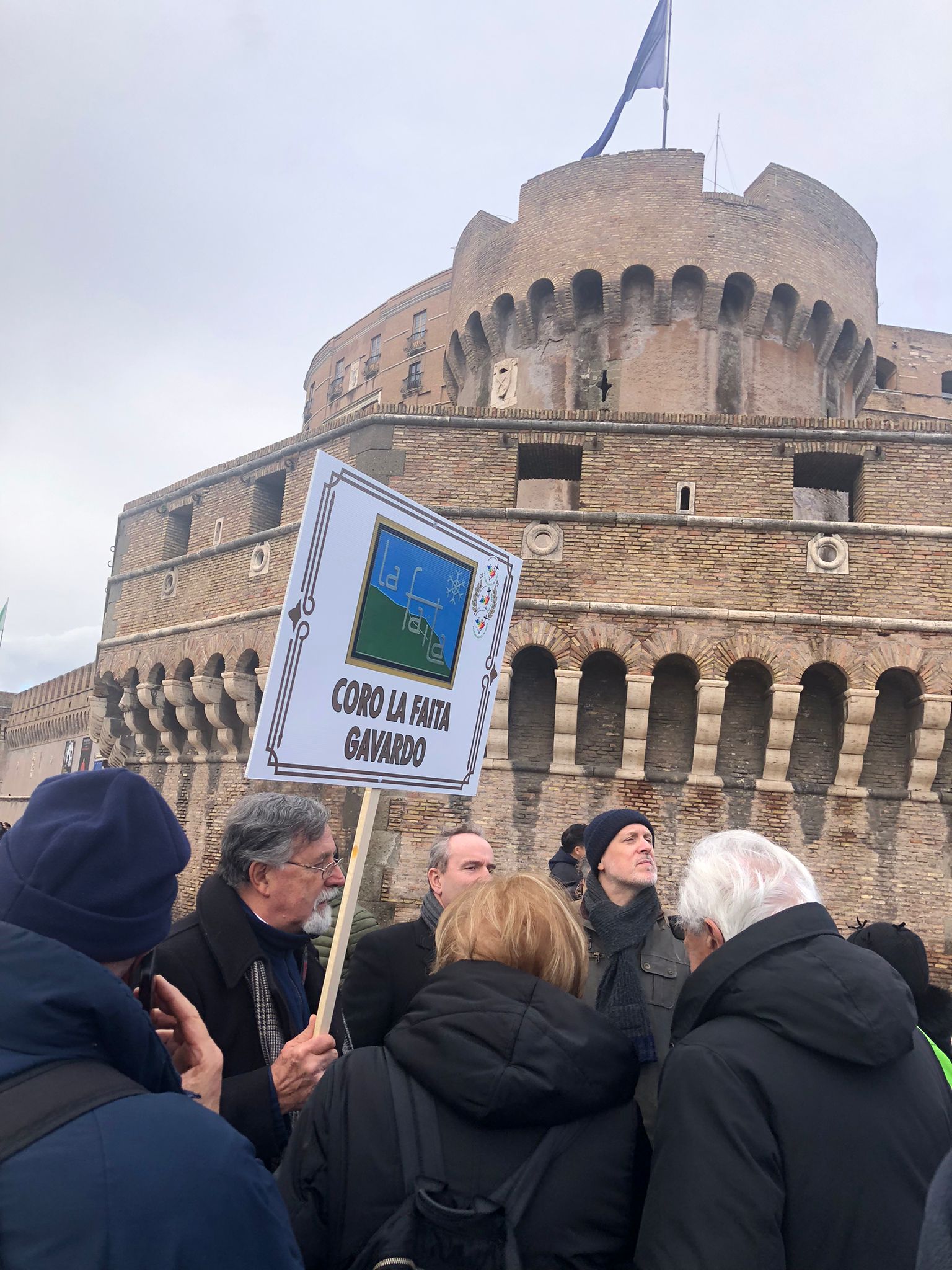 Non è stata una passeggiata ma un vero pellegrinaggio, che ha impegnato tutti, specialmente gli anziani; è obbligo sottolineare che sono ancora attivi alcuni coristi che viaggiano attorno agli ottant’anni. La corale La Faita è diretta dal maestro Valerio Bertolotti, che purtroppo alla vigilia della partenza ha dovuto ottemperare ad un serio impegno familiare, dovendo rinunciare alla trasferta romana. È stato degnamente sostituito dal suo vice, Luigi Codenotti, una colonna del coro La Faita, uno dei soci fondatori assieme al compianto fratello Eugenio. Il “Luigino” canta nel coro da 60 anni.