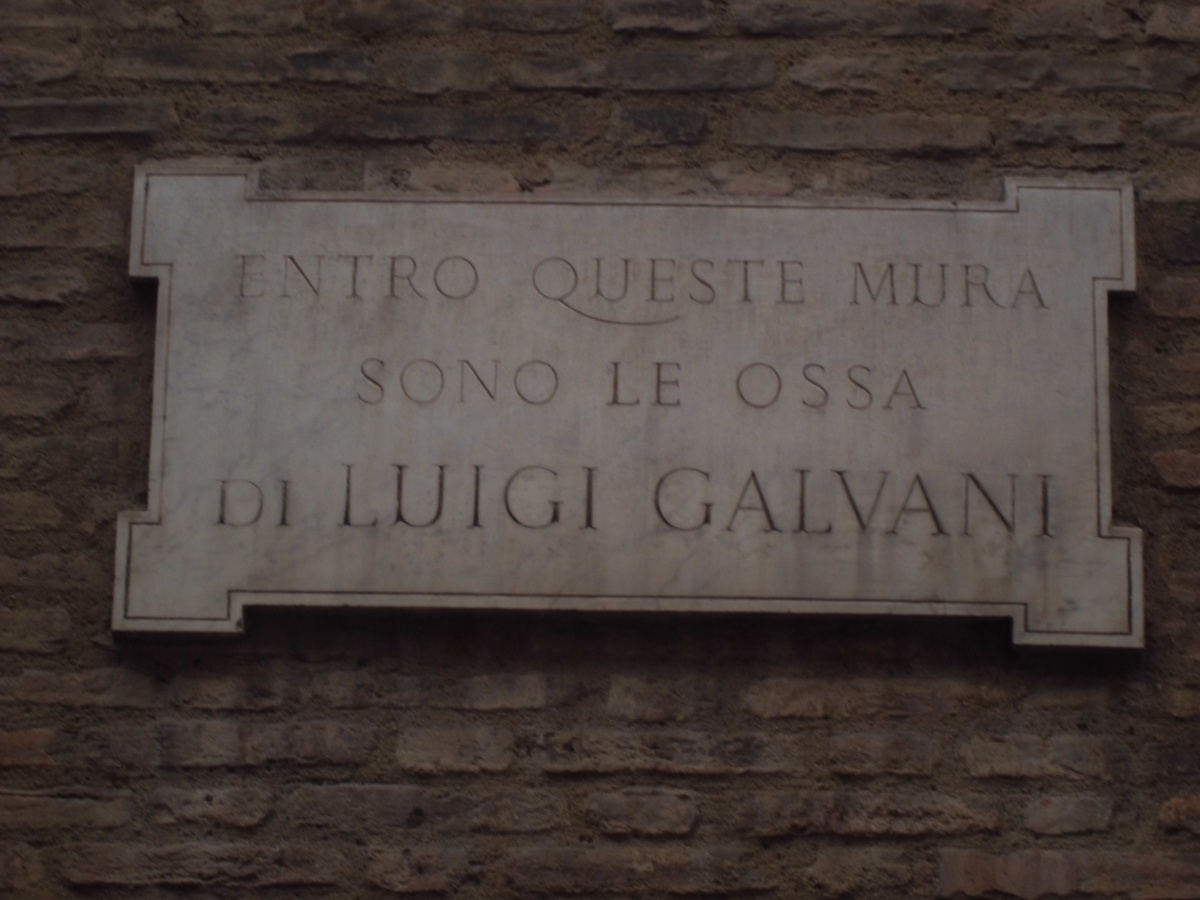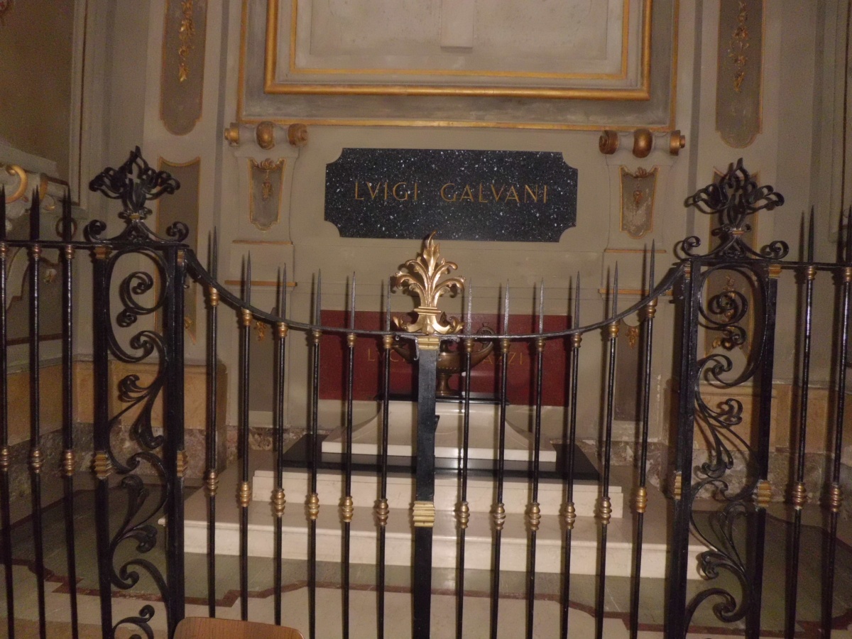 All’interno del piccolo tempio ecco il sepolcro di Luigi Galvani, il primo a capire che il corpo umano risponde a degli stimoli elettrici.