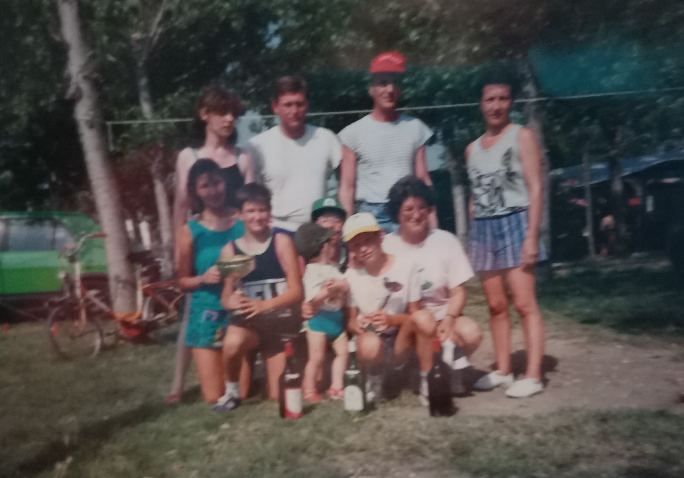 3) Nel 1989 al “Camping delle rose”: Franco (col cappellino rosso) è accanto a sua moglie Giuliana, il ragazzo col cappellino giallo è il Pizeta, figlio di Ceci e Aldo