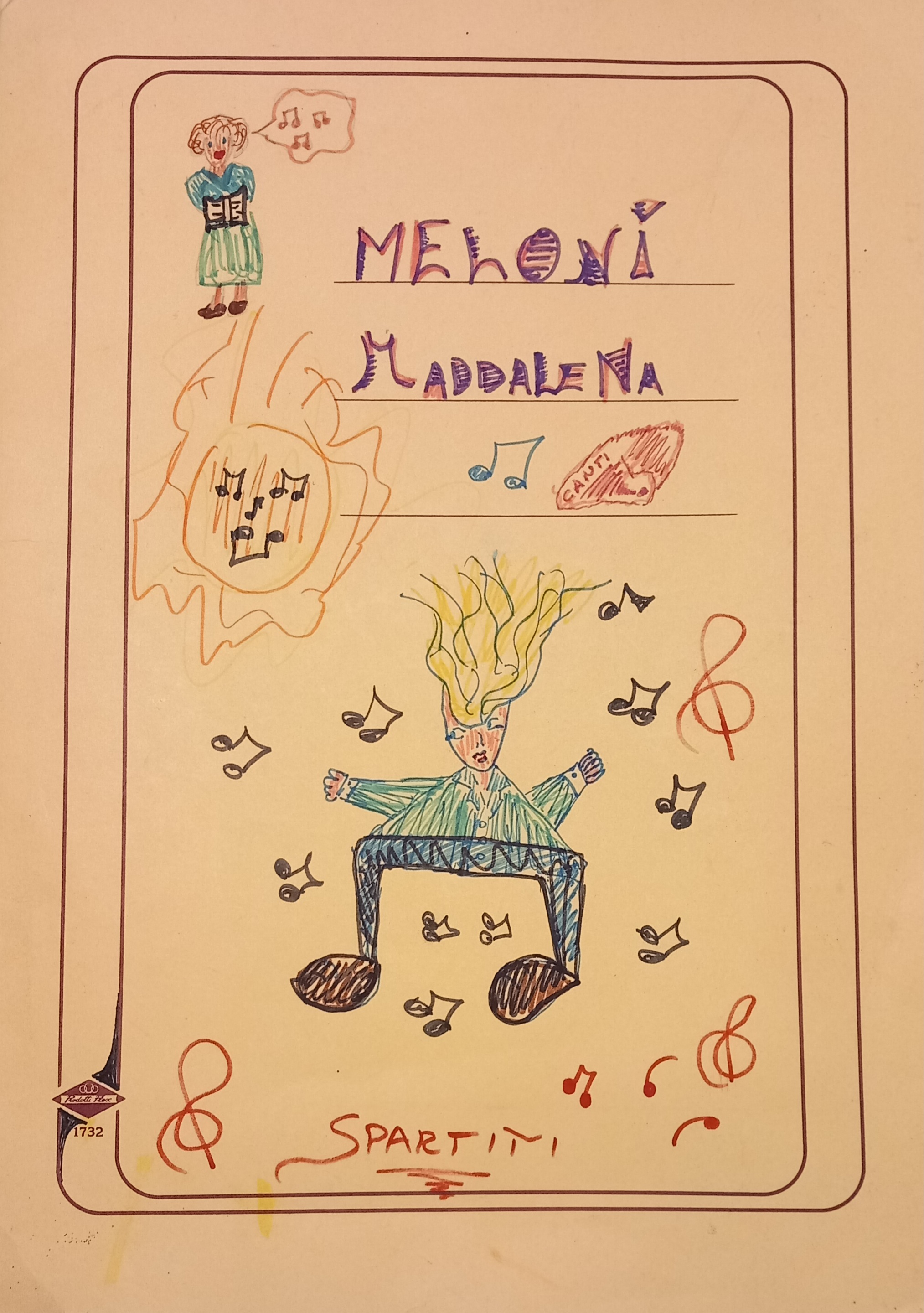 2) Copertina degli spartiti di Lena quando cantava nel coro di Muscoline (disegnata dalla nipote Chiara quando aveva 7 anni)