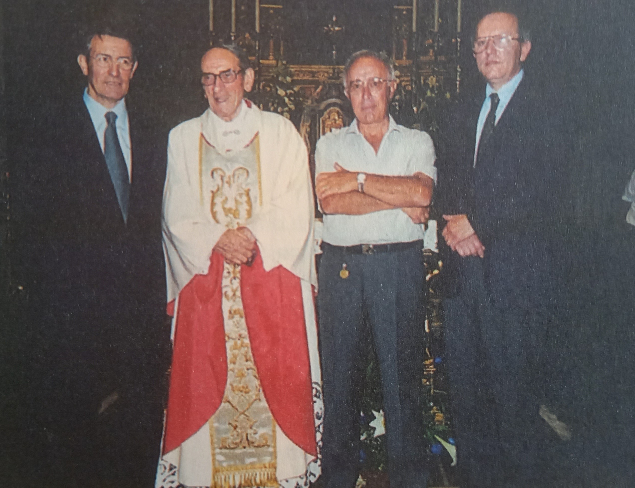 4) Gaetano Mora (a sx) con don Antonio Andreassi ed i sindaci Gian Paolo Mora e Gabriele Avanzi (luglio 2000)