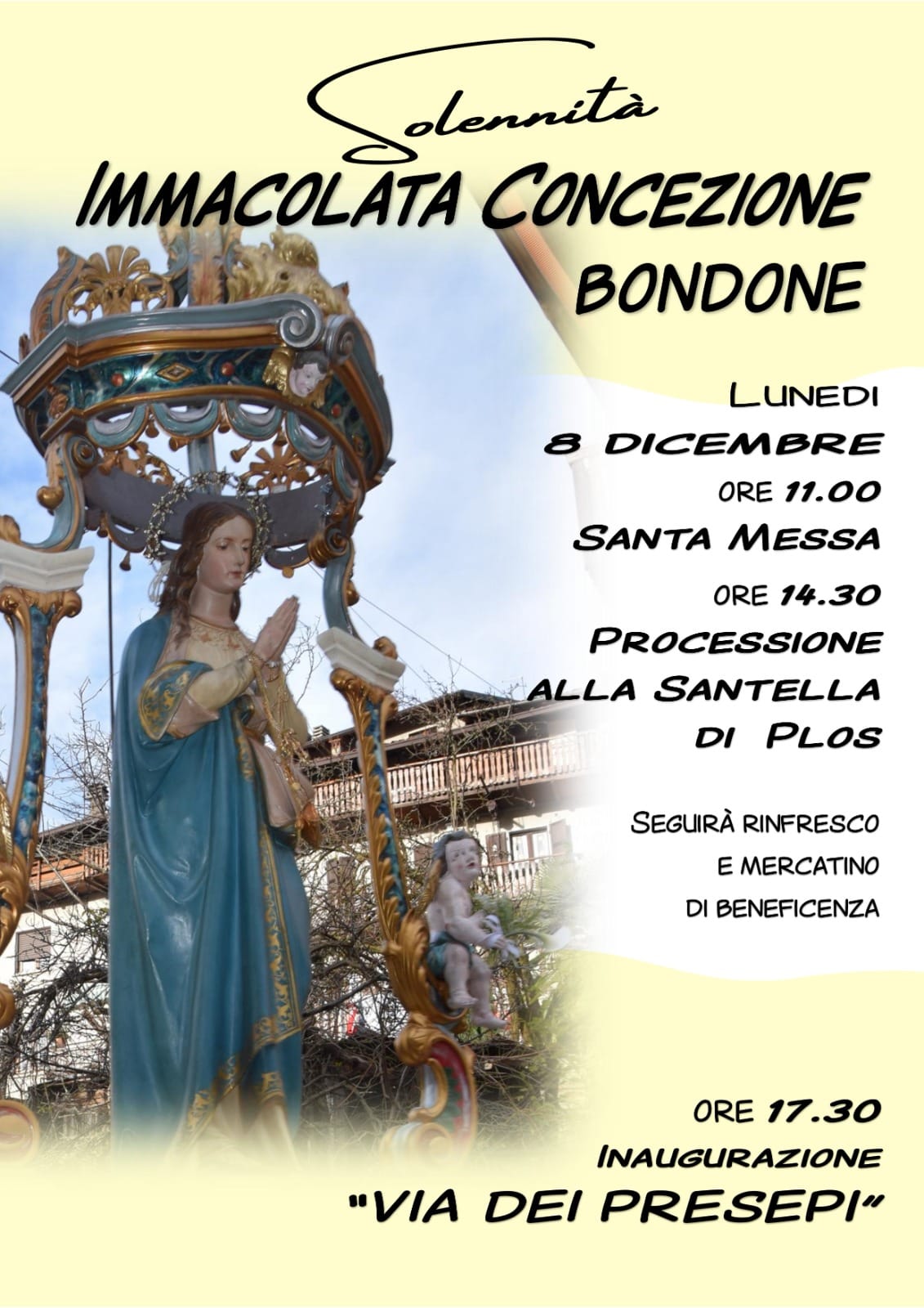 La festa dell'Immacolata di Bondone vedeva l'incontro con gli abitanti e amici della Val del Chiese che numerosi salivano a Bondone per partecipare alla solenne processione pomeridiana, ma anche per cercare di farsi la “morusa”, la fidanzata con una delle tante belle “matele carbonere”, tante belle ragazze giovani di cui il paese allora abbondava.